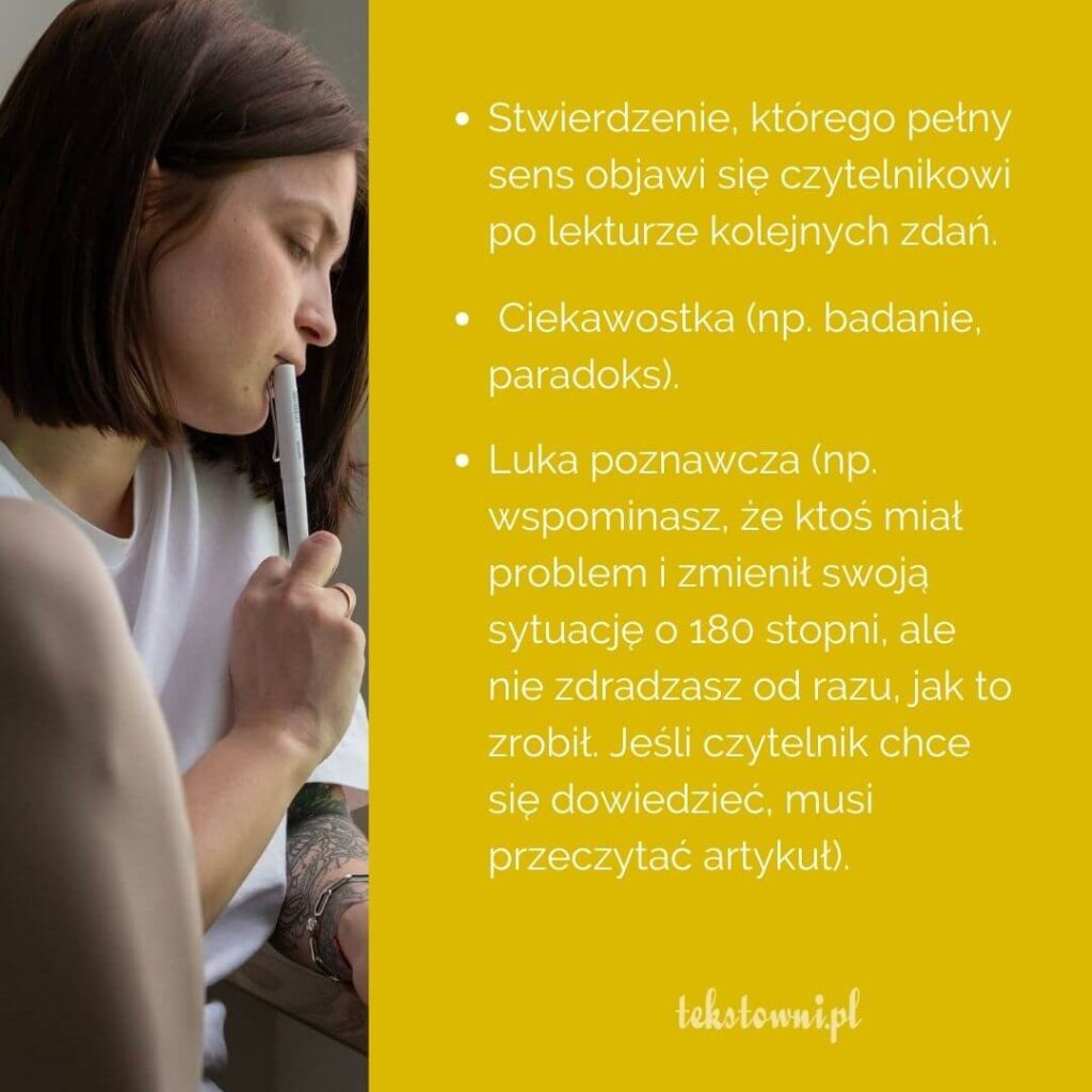Jakie z tego wnioski? Skoro każde zdanie to być albo nie być naszego tekstu, to nie możemy sobie pozwolić na banały. Musimy działać sprytnie.