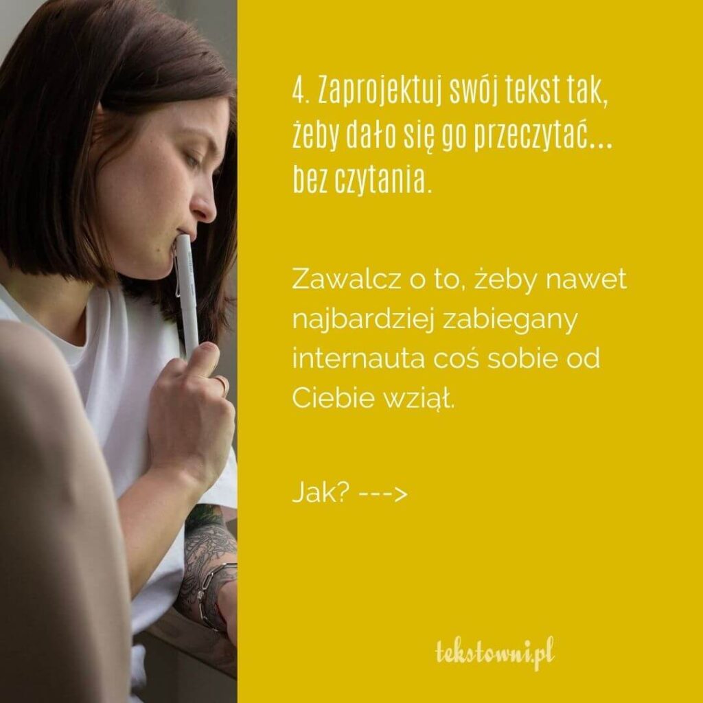 Podrzucam Wam 5 praktycznych sposobów na to, żeby Wasze teksty czytały się same. Żeby na kolejnych etapach zawsze było coś, co będzie wołało „Czytaj dalej!”.